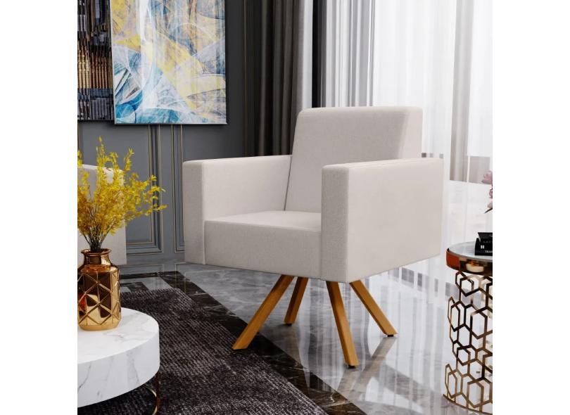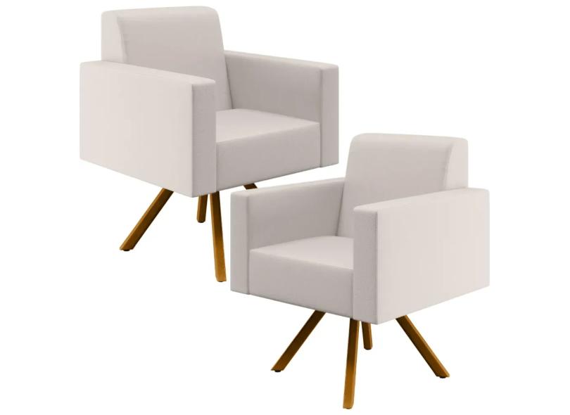 Kit 02 Poltronas Decorativa Base Giratória de Madeira Helô L02 Linho Cru - Lyam Decor