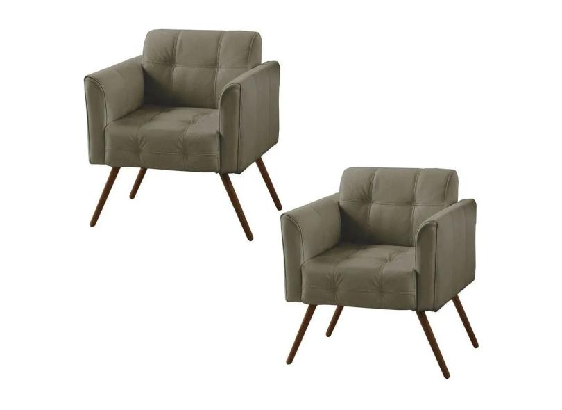 Kit 02 Poltronas Decorativa Bia Couro Fendi - Gran Belo
