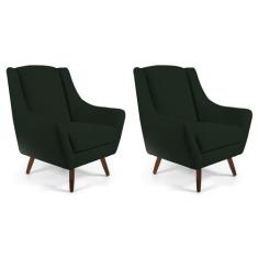 O menor preço encontrado no Brasil para Kit 02 Poltronas Decorativa Fixa Pés de Madeira Juliet D02 Veludo Verde B-303 - Lyam Decor atualmente é R$ 2.366,44.
