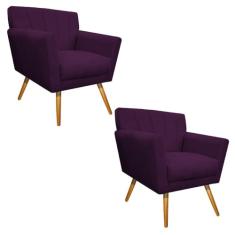 O menor preço encontrado no Brasil para kit 02 Poltronas Decorativa Laura Palito Mel Suede Roxo - Amarena Móveis atualmente é R$ 947,19.