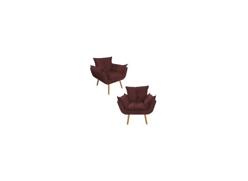 Kit 02 Poltronas Decorativa Opalla Pés Palito Suede Bordô - DS Estofados