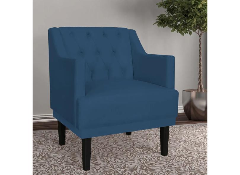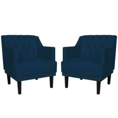 Kit 02 Poltronas Decorativas Clássica Pés Trapézio Suede Marinho - DS Estofados