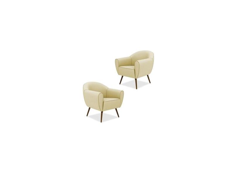 Kit 02 Poltronas Decorativas com Pés Palito Nina D02 Corano Bege C-26 - Lyam Decor
