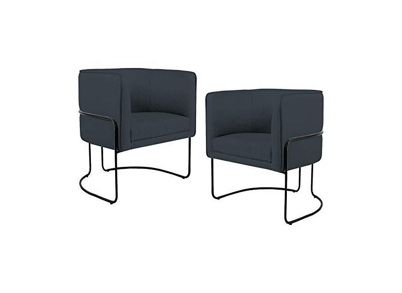 Kit 02 Poltronas Decorativas Fixa Base de Aço Betina D02 Linho Chumbo C-465 - Lyam Decor