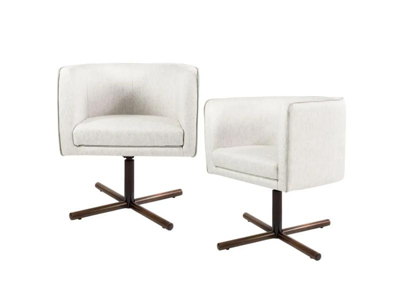 Kit 02 Poltronas Decorativas Giratória Base X Betina D02 Linho Creme A-48 - Lyam Decor