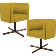 O menor preço encontrado no Brasil para Kit 02 Poltronas Decorativas Giratória Base X Betina D02 Veludo Mostarda B-279 - Lyam Decor atualmente é R$ 3.050,33.