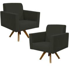 Kit 02 Poltronas Decorativas Giratória Sala de Estar Base de Madeira Helô L02 Suede - Lyam Decor