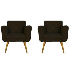 Kit 02 Poltronas Decorativas Isa em Tressê Suede Marrom - DS Móveis