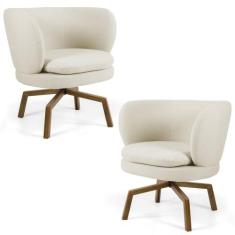 Kit 02 Poltronas Decorativas Melissa Base Ka Giratória Castanho B-309 Veludo Bege - Domi