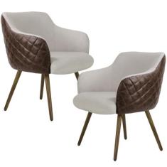 O menor preço encontrado no Brasil para Kit 02 Poltronas Decorativas Pés Palito Jade D02 Linho Bege C-107 Tressê Corano Marrom - Lyam Decor atualmente é R$ 2.098,53.