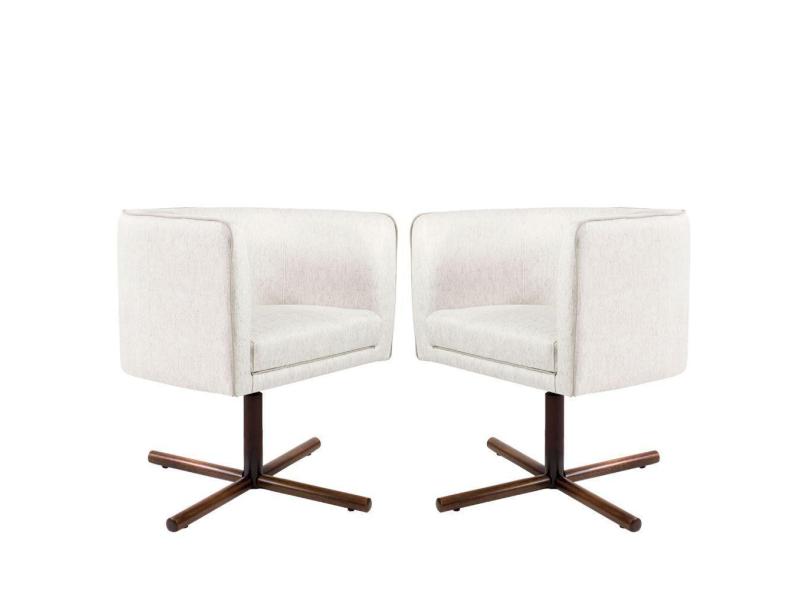 Kit 02 Poltronas Decorativas Sala de Estar Giratória Xis Nix Linho Creme - Gran Belo