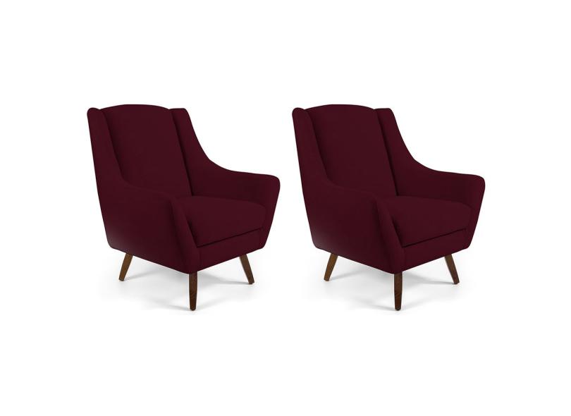 Kit 02 Poltronas Decorativas Sala de Estar Pés de Madeira Naomi Veludo Marsala - Gran Belo