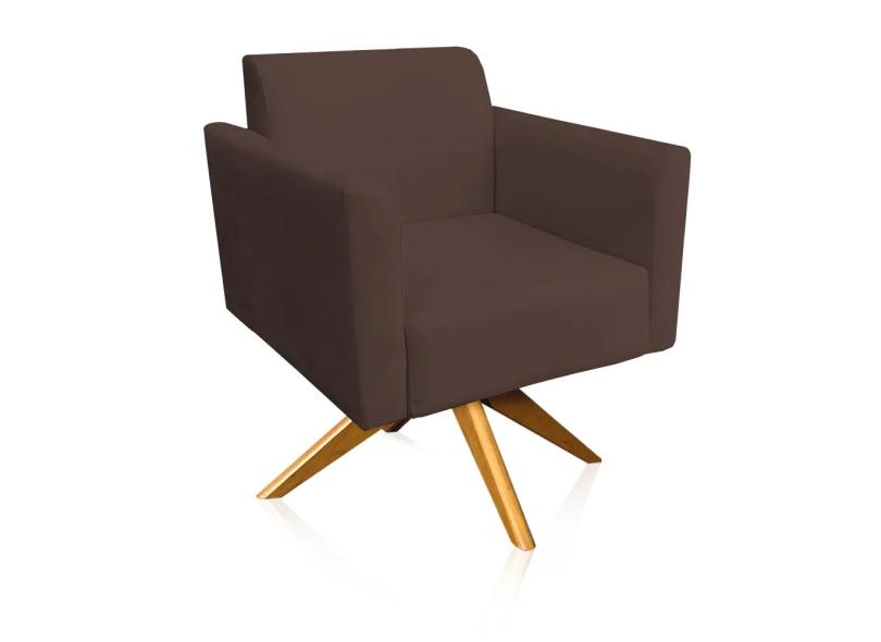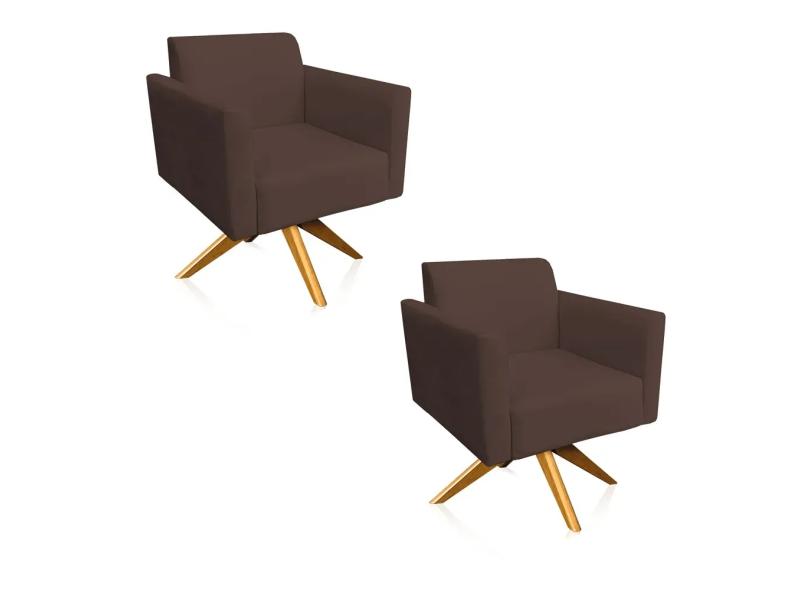Kit 02 Poltronas Giratória Marisa Suede Marrom Base Madeira MA30 D'Rossi