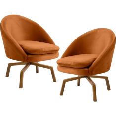 Kit 02 Poltronas Giratória Rebeca Veludo Telha Gran Belo