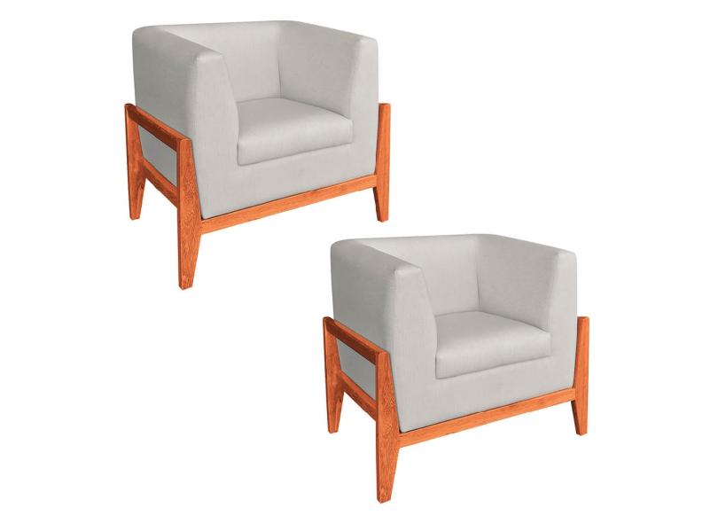 Kit 02 Poltronas Lucy Linho Bege A19 Base Madeira Castanho D'Rossi