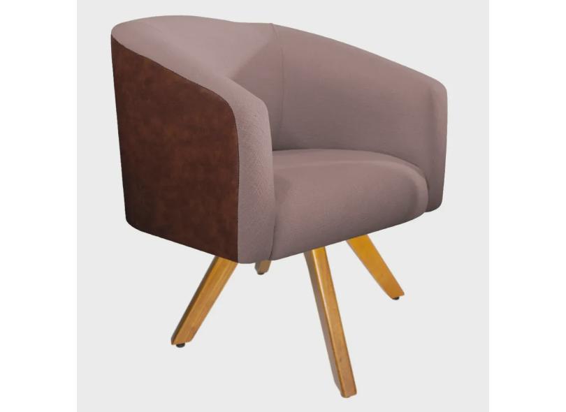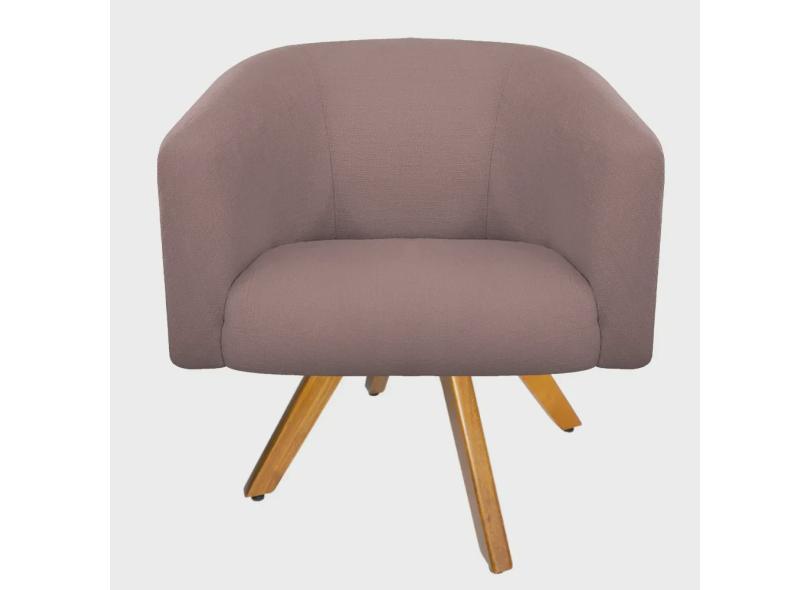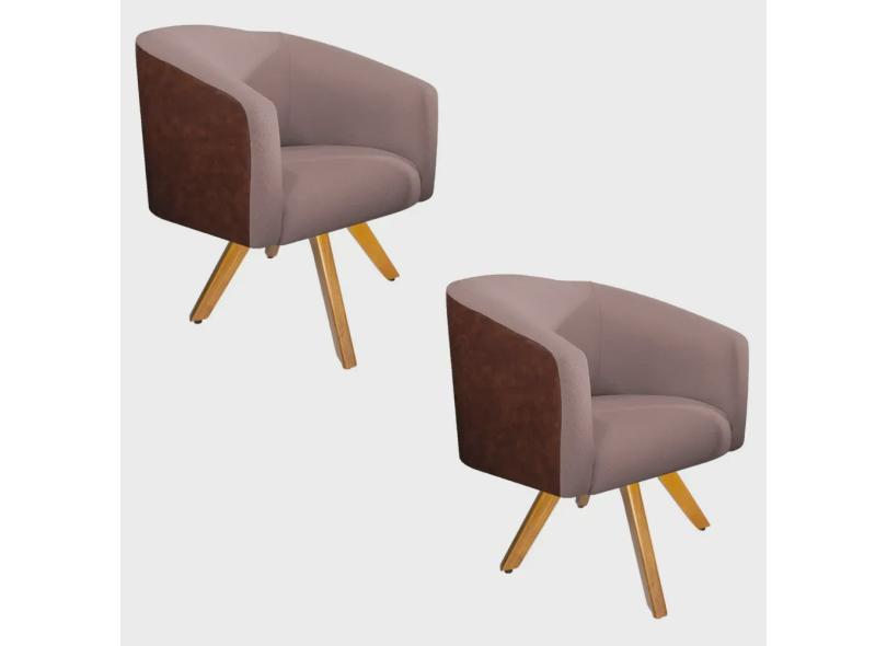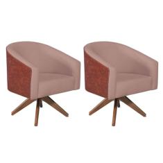 Kit 02 Poltronas Luiza Base Giratória de Madeira Corano Nozes e Linho Rosê - Doce Sonho Móveis