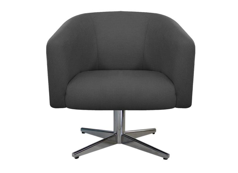 kit 02 Poltronas Luiza Base Giratória de Metal Corano Nozes e Linho Chumbo - Amarena Moveis