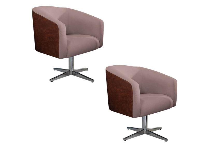 O menor preço encontrado no Brasil para Kit 02 Poltronas Luiza Base Giratória De Metal Corano Nozes E Linho Rosê - Adj Decor atualmente é R$ 1.527,50.