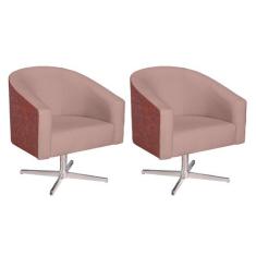 Kit 02 Poltronas Luiza Base Giratória De Metal Corano Nozes E Linho Rosê - Adj Decor