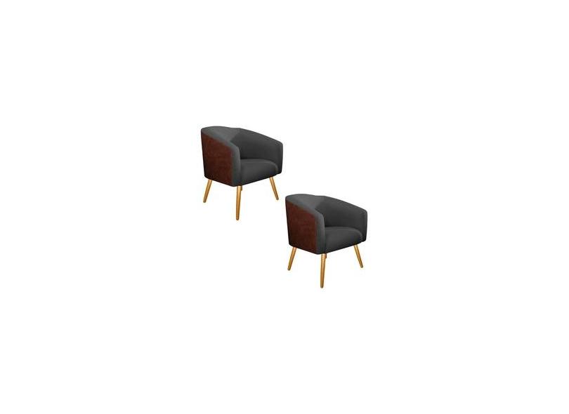 kit 02 Poltronas Luiza Corano Nozes e Linho Chumbo - Amarena Móveis