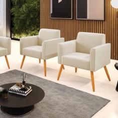 Kit 02 Poltronas Marisa Suede Bege Pés Palito Castanho D'Rossi