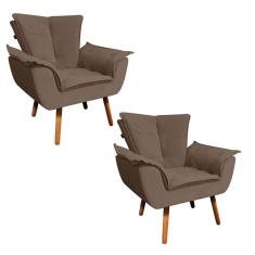 Kit 02 Poltronas Opala Veludo Marrom Pés Palito Castanho - D`Rossi