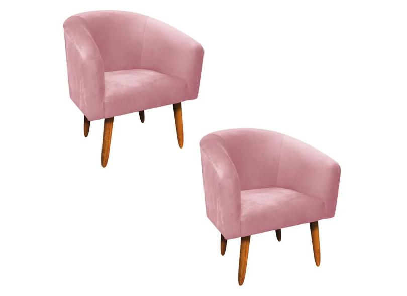 Kit 02 Poltronas Stella Suede Rose Pés Palito Castanho D'Rossi