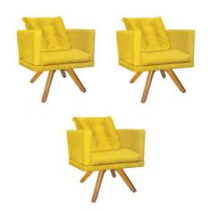 Kit 03 Poltrona Milena Confort Base Giratória Caramelo Com Almofada Sa