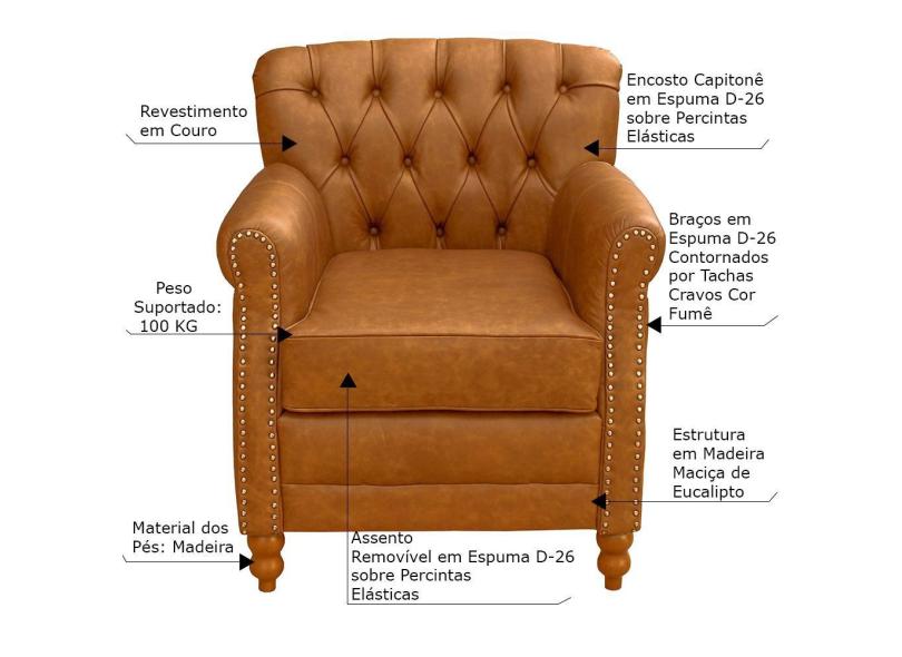 Kit 03 Poltronas Decorativas Sala de Estar Níger Pés Madeira Couro