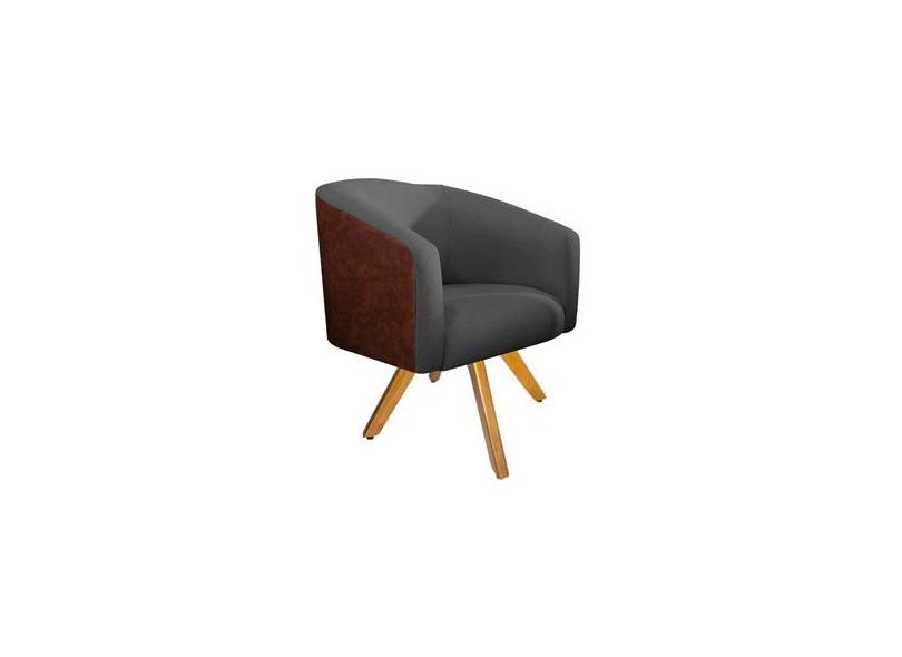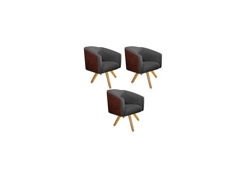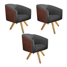 kit 03 Poltronas Luiza Base Giratória de Madeira Corano Nozes e Linho Chumbo - Amarena Móveis