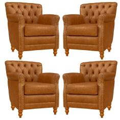Kit 04 Poltronas Decorativas Sala de Estar Níger Pés Madeira Couro Mel - Gran Belo