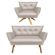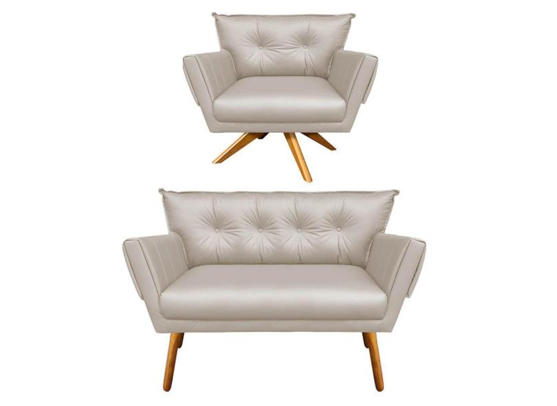 Kit 1 Namoradeira E 1 Poltrona Giratória Corino Bege