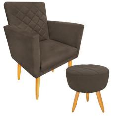 Kit 1 Poltrona Decorativa + Puff Maitê Matelassê Estilo Nina Suede Marrom