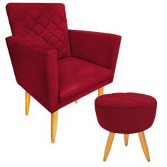 Kit 1 Poltrona Decorativa + Puff Maitê Matelassê Estilo Nina Suede