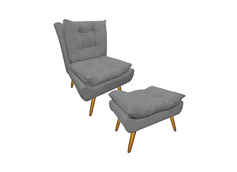 Kit 1 Poltrona e 1 Puff Pés Palito Para Sala de Tv Karen Suede - DL Decor