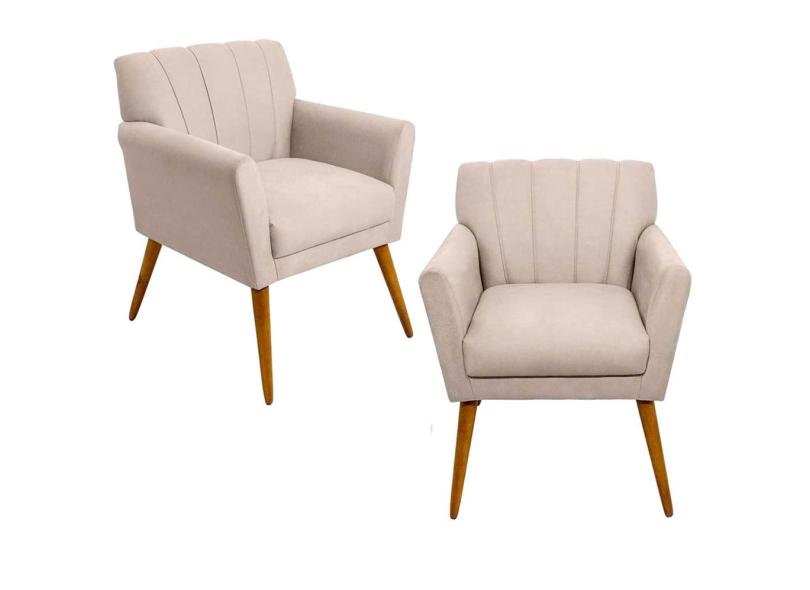 Kit 2 Poltrona Cecilia Escritório Decoração Salão de Beleza Recepção Sala de Estar Jantar Montanaris Decor Suede Bege