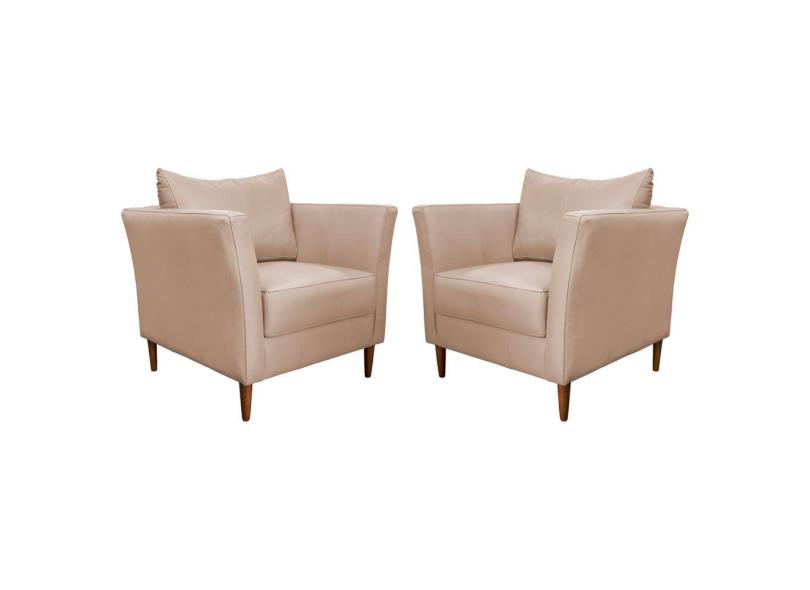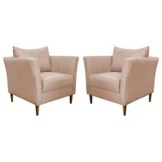 Kit 2 Poltronas Decorativa Sala de Estar Pés Palito Lubbock Couro Bege - Gran Belo