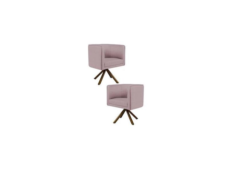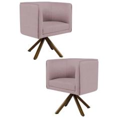 Kit 2 Poltronas Decorativas Base Giromad Madeira Betina B-305 Veludo Rosê - Domi