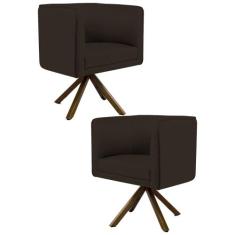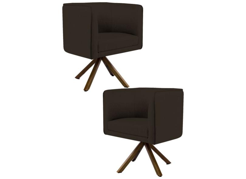 Kit 2 Poltronas Decorativas Base Giromad Madeira Betina C-34 Corano Marrom - Domi