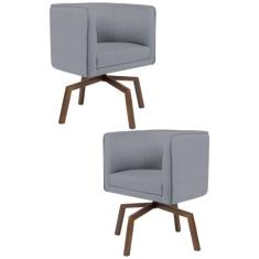 Kit 2 Poltronas Decorativas Base Ka Madeira Betina C-416 Linho Escuro - Domi
