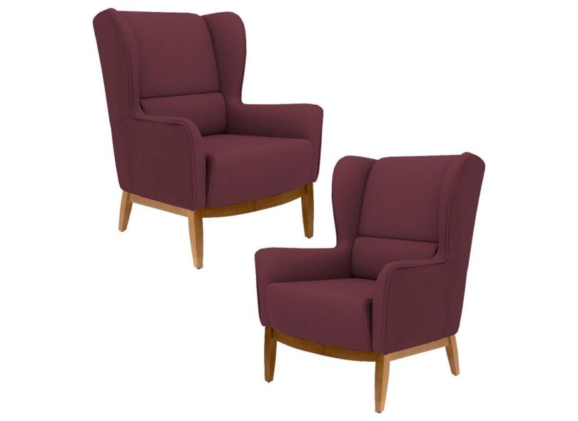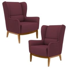 Kit 2 Poltronas Decorativas Base Manu Madeira Milena B-278 Veludo Marsala - Domi