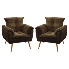Kit 2 Poltronas Decorativas Beta Suede Marrom Aradecor