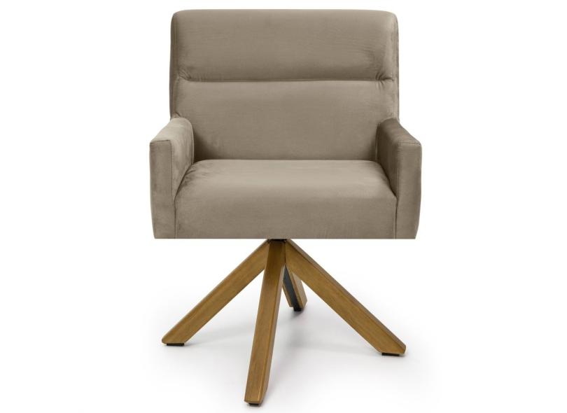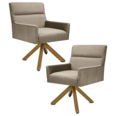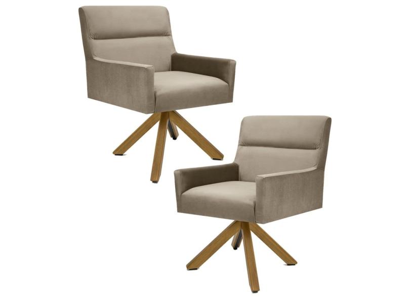 Kit 2 Poltronas Decorativas Giratórias Base Giromad Madeira Angel B-68 Veludo Marrom Claro - Domi