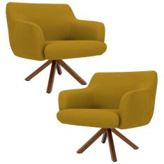 Kit 2 Poltronas Decorativas Giratórias Base Giromad Madeira Jade B-279