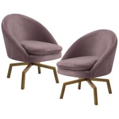 Kit 2 Poltronas Decorativas Giratórias Base Ka Madeira Rafa B-305 Veludo Rosê - Domi