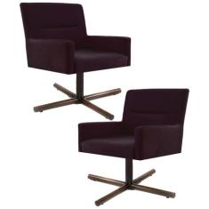 Kit 2 Poltronas Decorativas Giratórias Base Xis Madeira Angel B-292 Veludo Uva - Domi