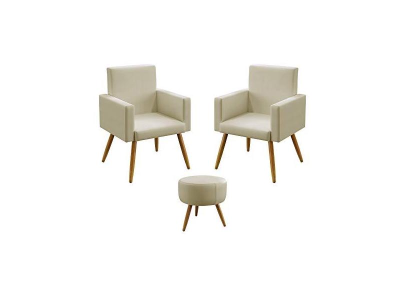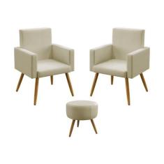 Kit 2 Poltronas Decorativas Nina Com Puff Solar Para Sala de Estar Sued Bege Aradecor