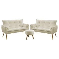 O menor preço encontrado no Brasil para Kit 2 Poltronas Namoradeiras Decorativas Estofadas Para Sala De Estar Opala e Puff Solar Sued Bege Aradecor atualmente é R$ 1.145,75.
