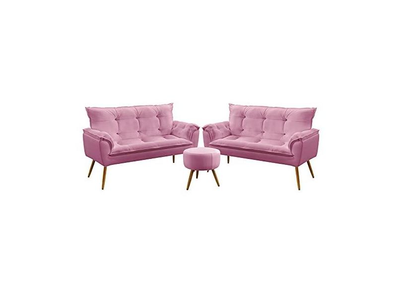 O menor preço encontrado no Brasil para Kit 2 Poltronas Namoradeiras Decorativas Estofadas Para Sala De Estar Opala e Puff Solar Sued Rosê Aradecor atualmente é R$ 1.145,75.