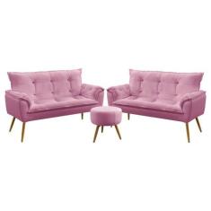 Kit 2 Poltronas Namoradeiras Decorativas Estofadas Para Sala De Estar Opala e Puff Solar Sued Rosê Aradecor